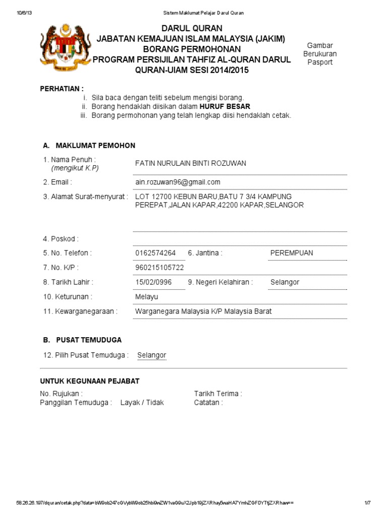 Sistem Maklumat Pelajar Darul Quran Pdf